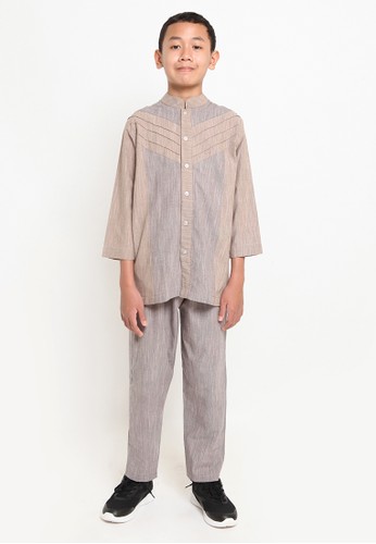Selain baju koko yang beraksen etnik, ada juga model dengan aksen seperti rompi atau coat di bagian depan atasan. Jadi, anak laki – laki akan seperti memakai baju koko berompi. Hal ini bisa mempermanis suasana ibadah atau silaturrahim pertama mereka. Soal harga, jangan khawatir karena pakaian yang menjadi salah satu tren di tahun ini dibanderol Rp 55.800,00 saja.
